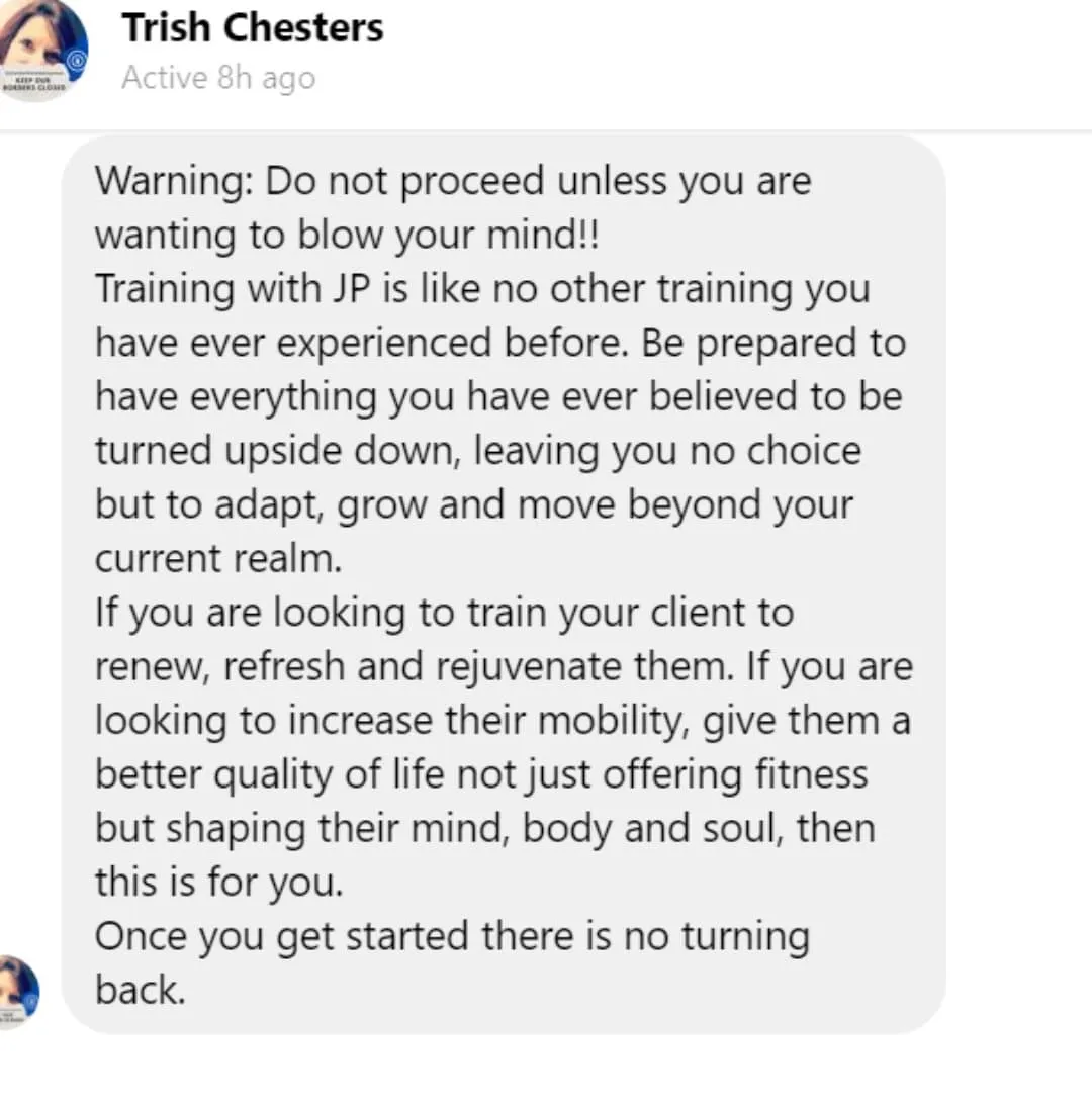 Known as ‘JP’ is highly regarded in the fitness industry as a movement coach, educator and mentor with a focus on using 3D movement and play. JP is an international speaker, an award winning presenter and a wealth of knowledge!